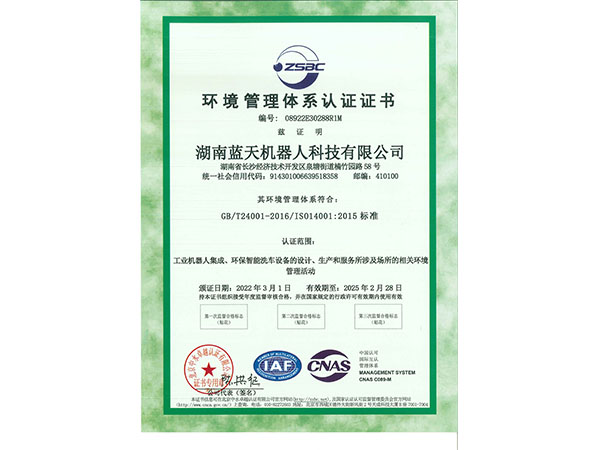 環(huán)境管理體系認(rèn)證證書